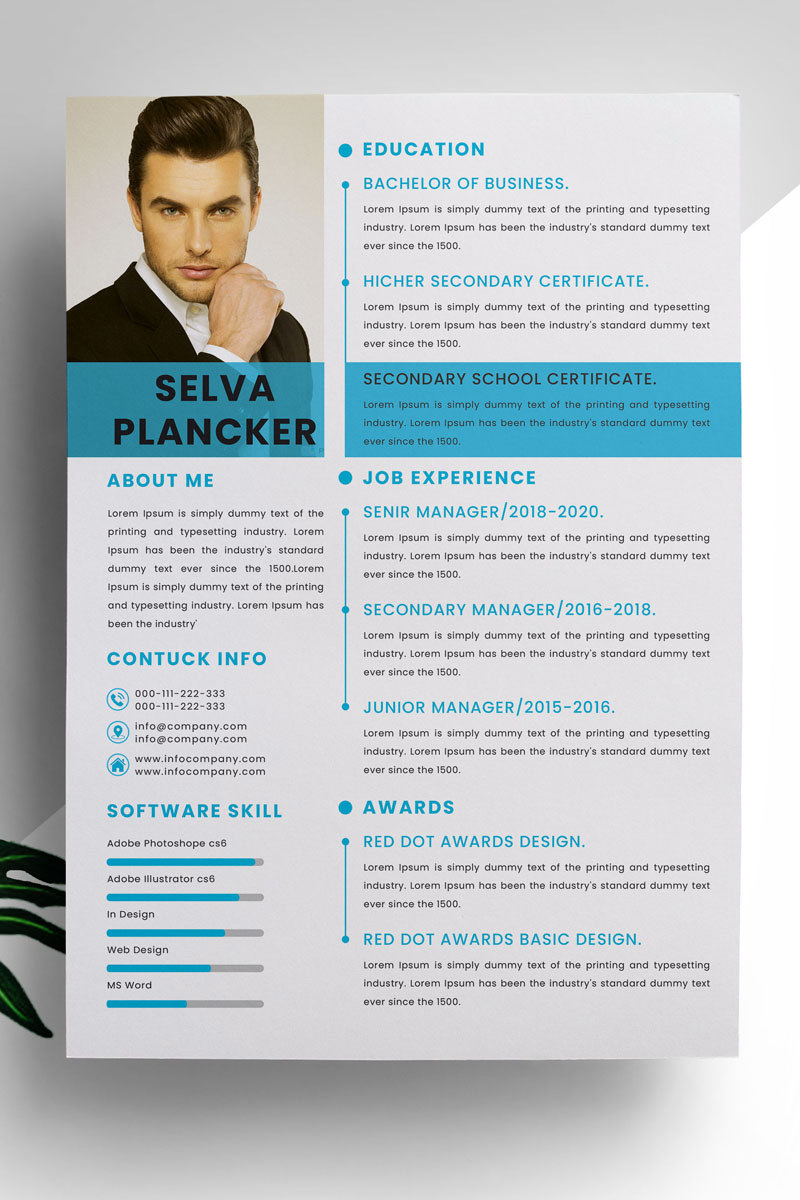 Download Резюме "Selva Plancker Resume Template" / Selva Plancker Resume Template - Резюме на тему графика modern resume portfolio professional clean cv design indesign infographic minimal pages word template