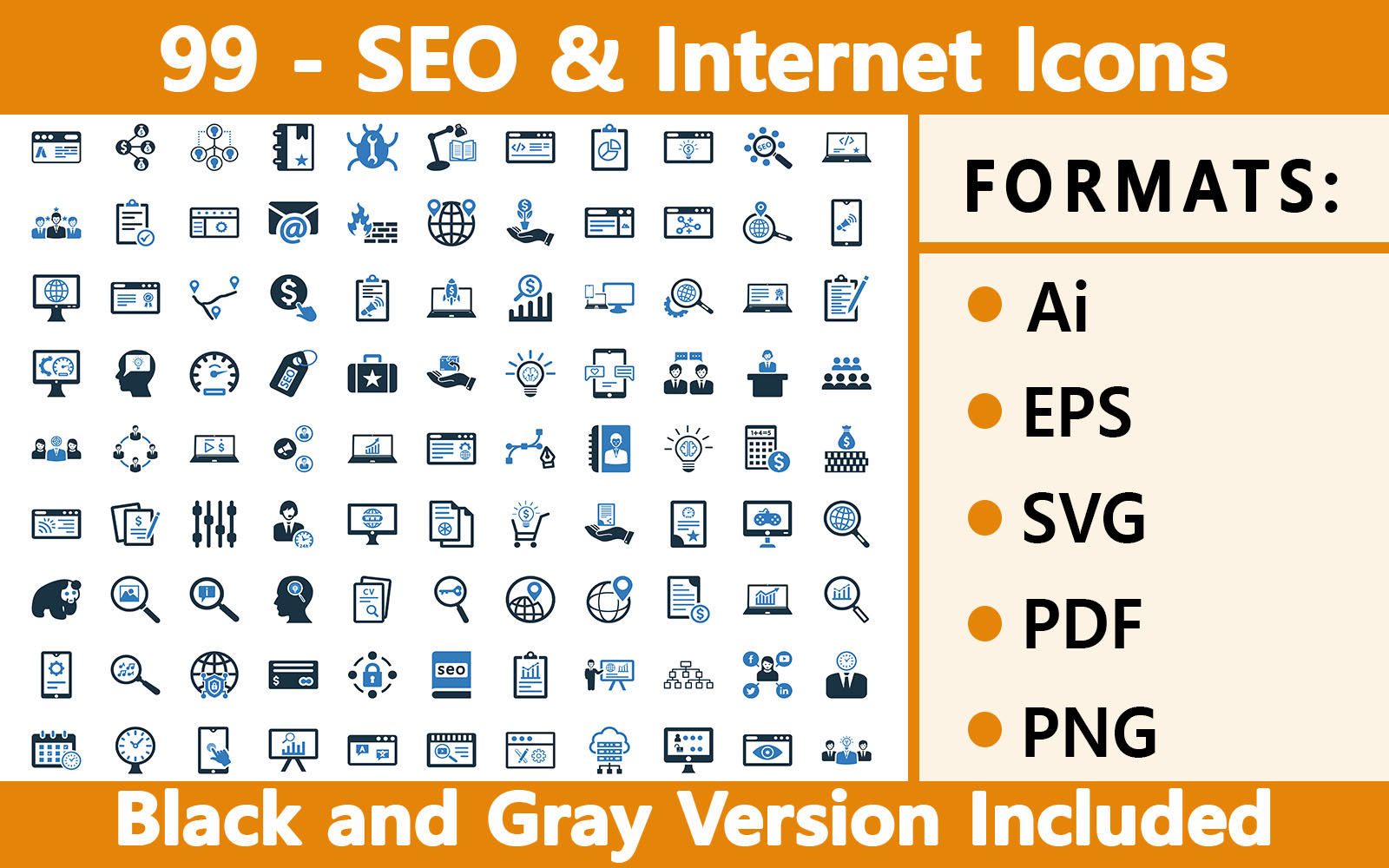 Download Набор иконок "SEO and Internet Pack | Vector Icon Set" / SEO and Internet Pack | Vector Icon Set - Набор иконок на тему графика seo,internet,web,marketing,optimization,search,engine,traffic,website,backlink,link,building,services,online,content,article,smart,idea,performance,specialist