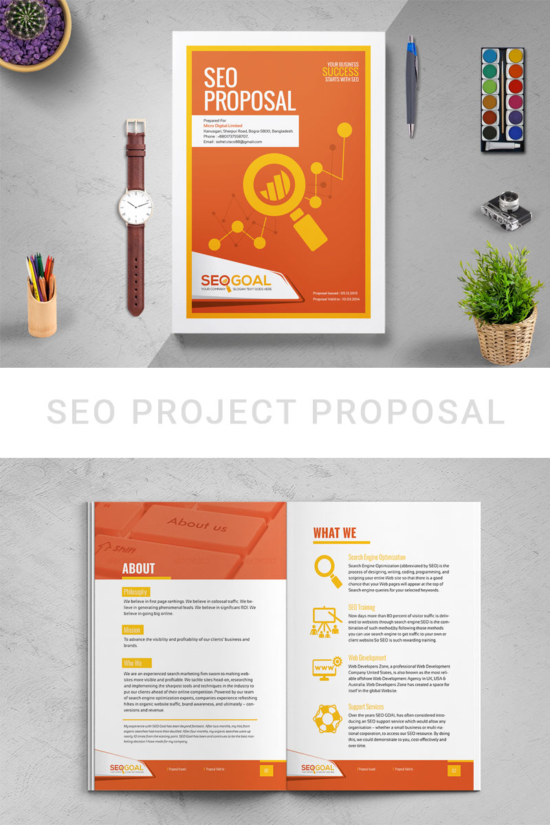 Download Фирменный стиль "SEO Project Proposal - Corporate Identity Template" / SEO Project Proposal - Corporate Identity Template - Фирменный стиль на тему графика seo search engine optimization marketing digital proposal template project design quote quotation indesign business clean word corporate stationery company simple
