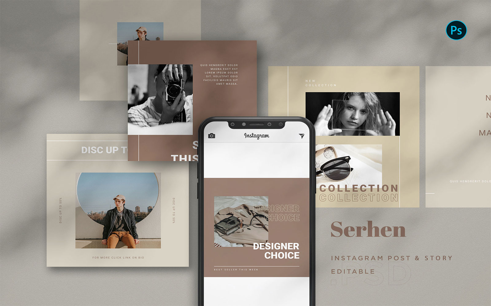 Download Шаблон для соцсетей "Serhen - Instagram Templates BL for Social Media" / Serhen - Instagram Templates BL for Social Media - Шаблон для соцсетей на тему графика instagram,post,feed,story,social,promotion,business,services,product,pack,company,sale,invitation,branding,apparel,grey,brown