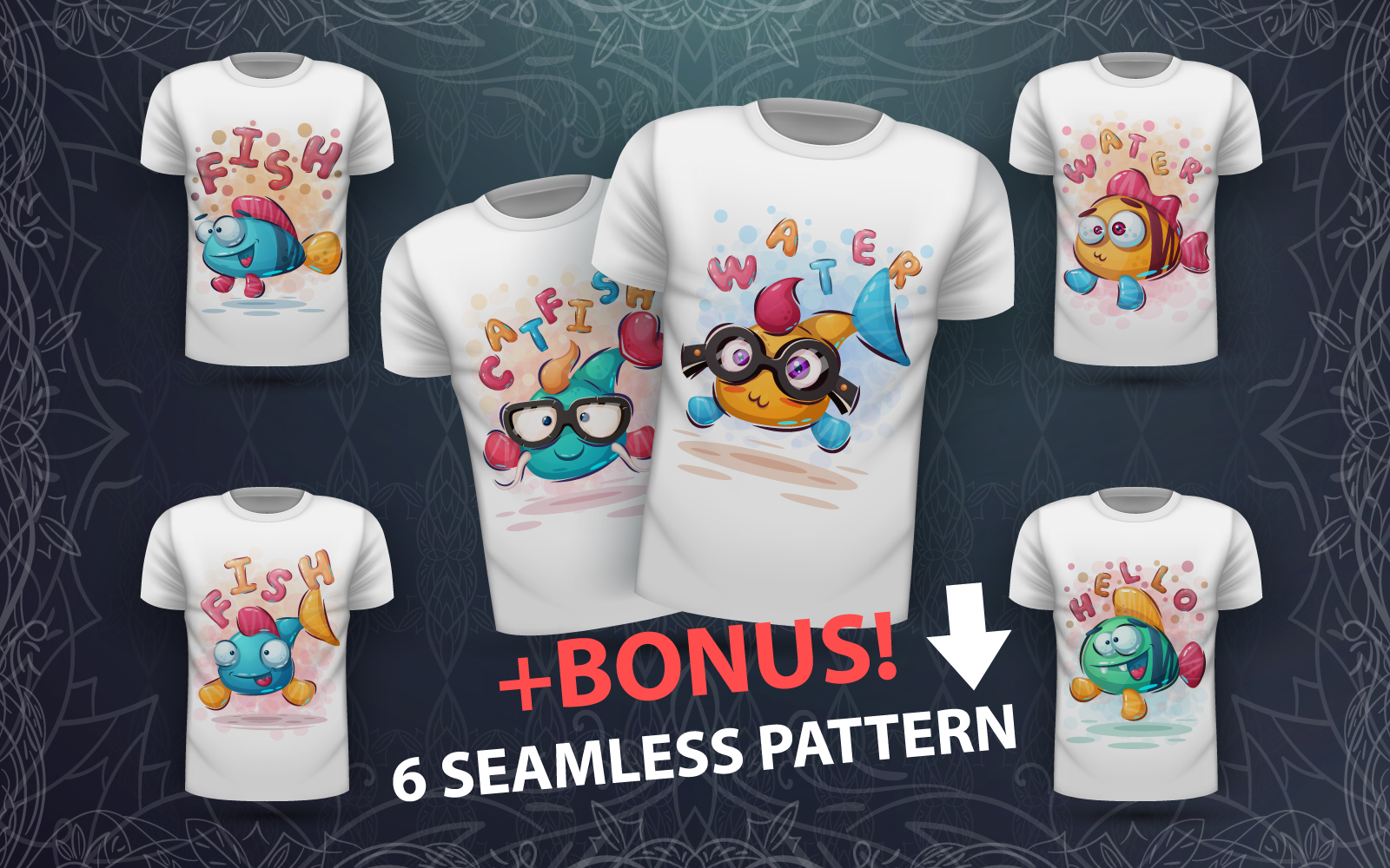 Download Vector "Set Cute Fish - Vector Image" / Set Cute Fish - Vector Image - Vector на тему графика fish,seamless,pattern,cartoon,character,characters,animal,animals,pet,cute,funny,pretty,beauty,happy,baby,kid,childish