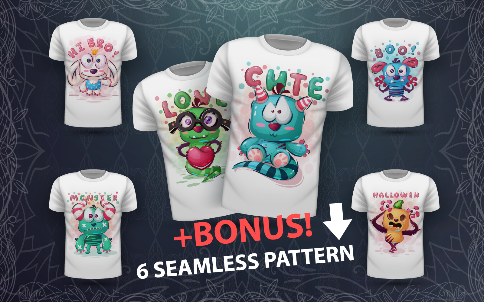 Download Vector "Set Cute Monster - Vector Image" / Set Cute Monster - Vector Image - Vector на тему графика monster,halloween,horror,fear,seamless,pattern,cartoon,character,characters,animal,animals,pet,cute,funny,pretty,beauty,happy,baby,kid,childish