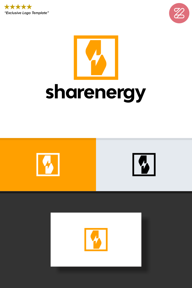 Download Шаблон логотипа "SHARENERGY Logo Template" / SHARENERGY Logo Template - Шаблон логотипа на тему графика energy flash volt hand negative space modern logo bolt lightning electric handshake deal team work company