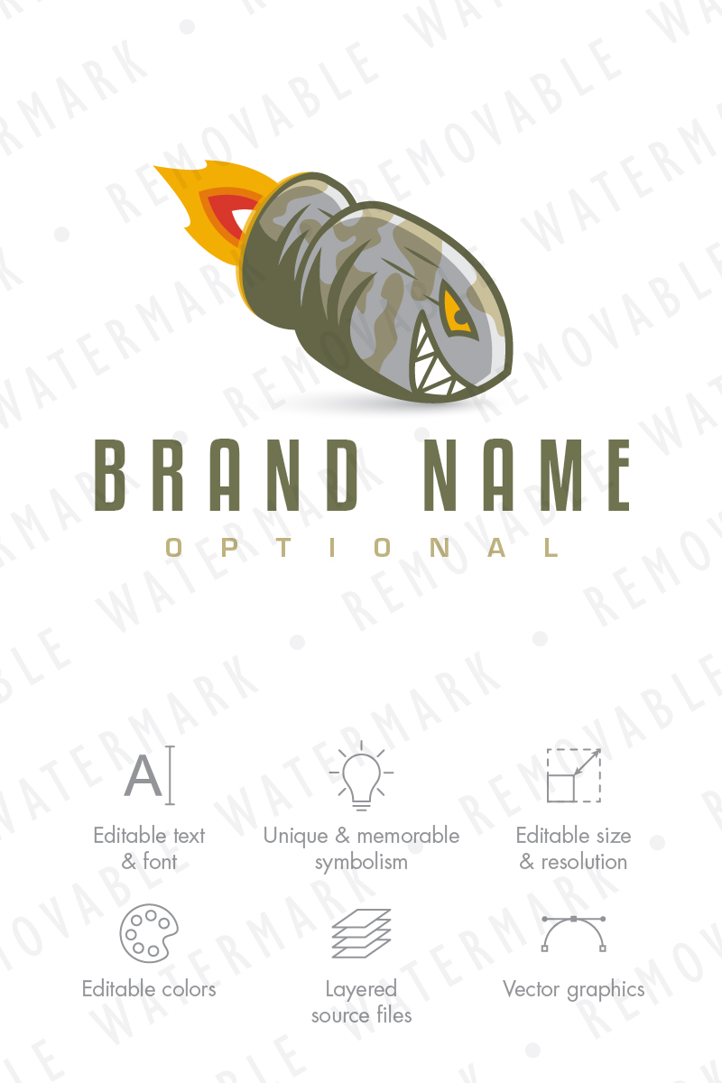 Download Шаблон логотипа "Shark Bullet - Logo Template" / Shark Bullet - Logo Template - Шаблон логотипа на тему графика shark character speed rocket illustration camouflage bomb army bullet weapon war grin missile fire mascot logo design template military entertainment