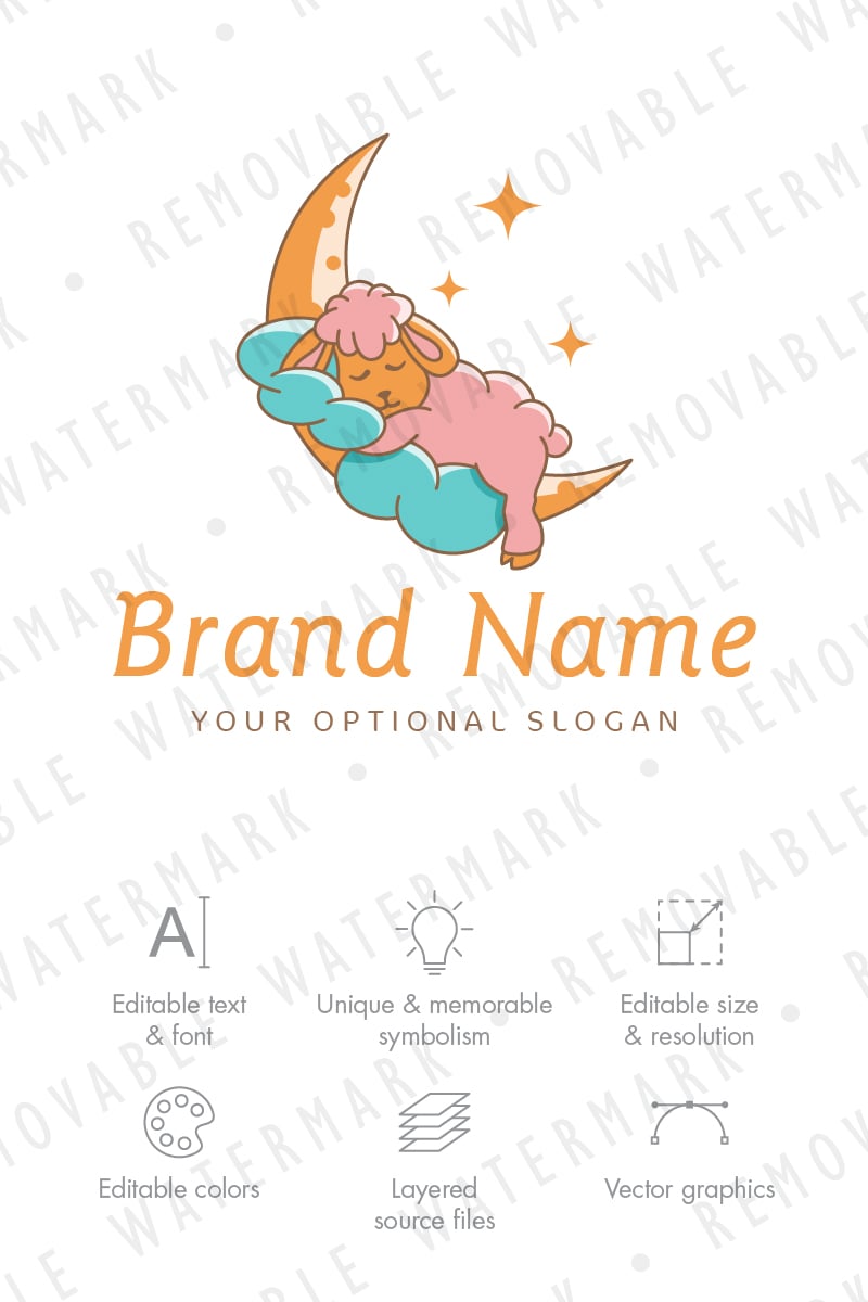 Download Шаблон логотипа "Sheep Dreams Logo Template" / Sheep Dreams Logo Template - Шаблон логотипа на тему графика night sleep dream sheep relax moon clouds sky wellness hotel illustration peace contentment harmony lamb soft wool logo design template
