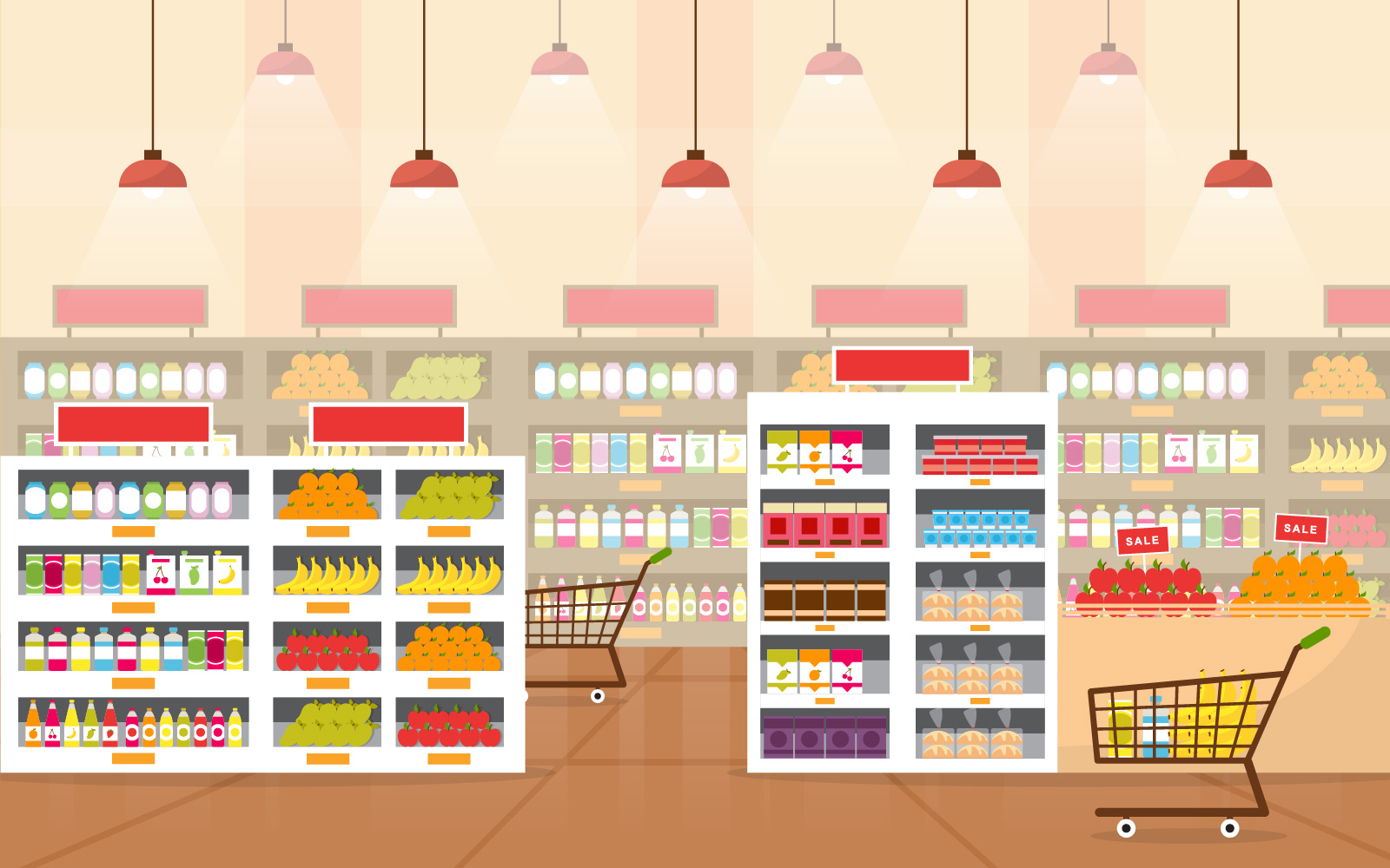 Download Иллюстрация "Shelf Store Modern - Illustration" / Shelf Store Modern - Illustration - Иллюстрация на тему графика supermarket,grocery,shelf,store,retail,shop,mall,interior,flat,illustration,vector,market,sale,fruit,milk,background,big,empty,groceries,showcase