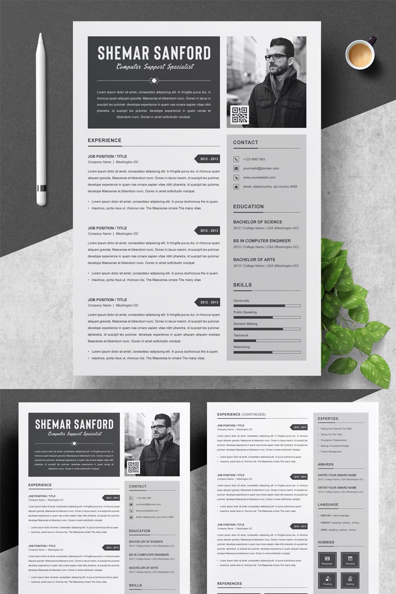 Download Резюме "Shemar Resume Template" / Shemar Resume Template - Резюме на тему графика resume template cv word professional black clean one page resume apple pages photo simple resuem cv editable man doctor teacher
