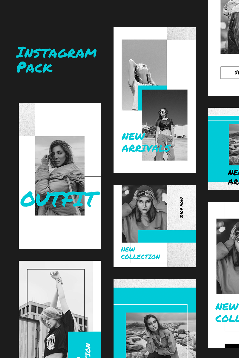 Download Шаблон для соцсетей "Shopio Instagram Pack Social Media Template" / Shopio Instagram Pack Social Media Template - Шаблон для соцсетей на тему графика social media instagram stories posts facebook trendy fashion streetwear promotion store shop feminine modern outfit psd templates pack