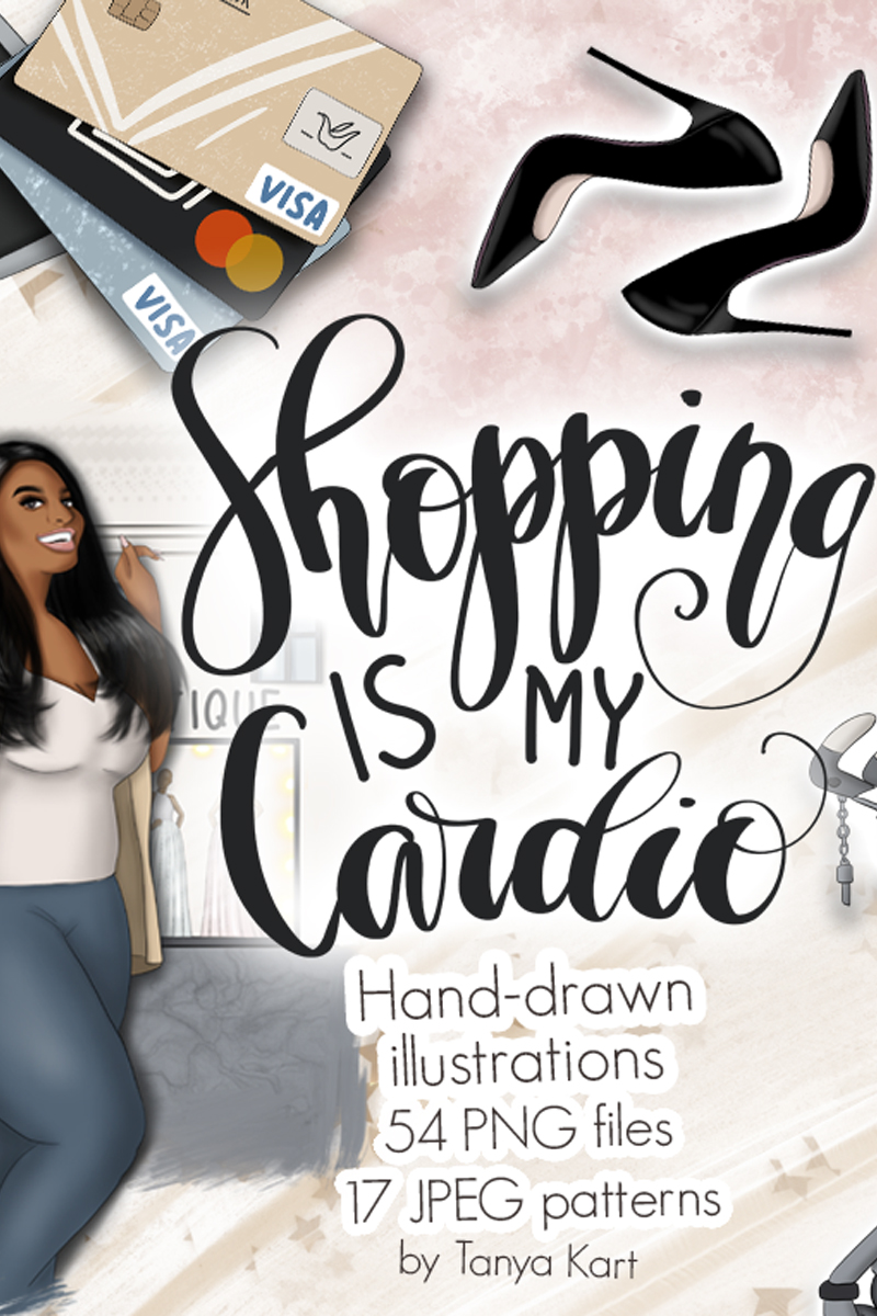 Download Иллюстрация "Shopping Is My Cardio Clipart & Patterns - Illustration" / Shopping Is My Cardio Clipart & Patterns - Illustration - Иллюстрация на тему графика shopping,sale,black,friday,cardio,girls,surface,pattern,paper,digital,illustration,fashion,blog,clipart,dress,clothing,cyber,monday,planner,stickers