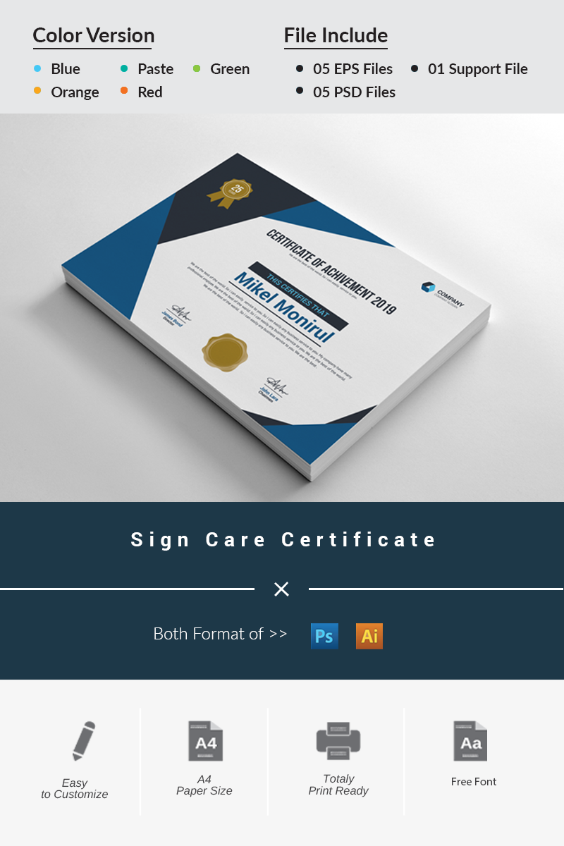 Download Шаблон сертификата "Sign Care Certificate Template" / Sign Care Certificate Template - Шаблон сертификата на тему графика achievement award background border certificate coupon diploma engraved engraving frame guilloche multipurpose pantone professional protected rosette secure security paper two
