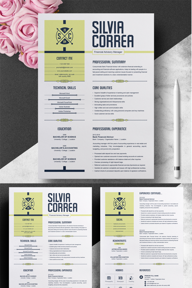 Download Резюме "Silvia Correa Resume Template" / Silvia Correa Resume Template - Резюме на тему графика resume template cv curriculum vitae modern clean word microsoft a4 us letter monochrome minimal diy teacher creative professional feminine
