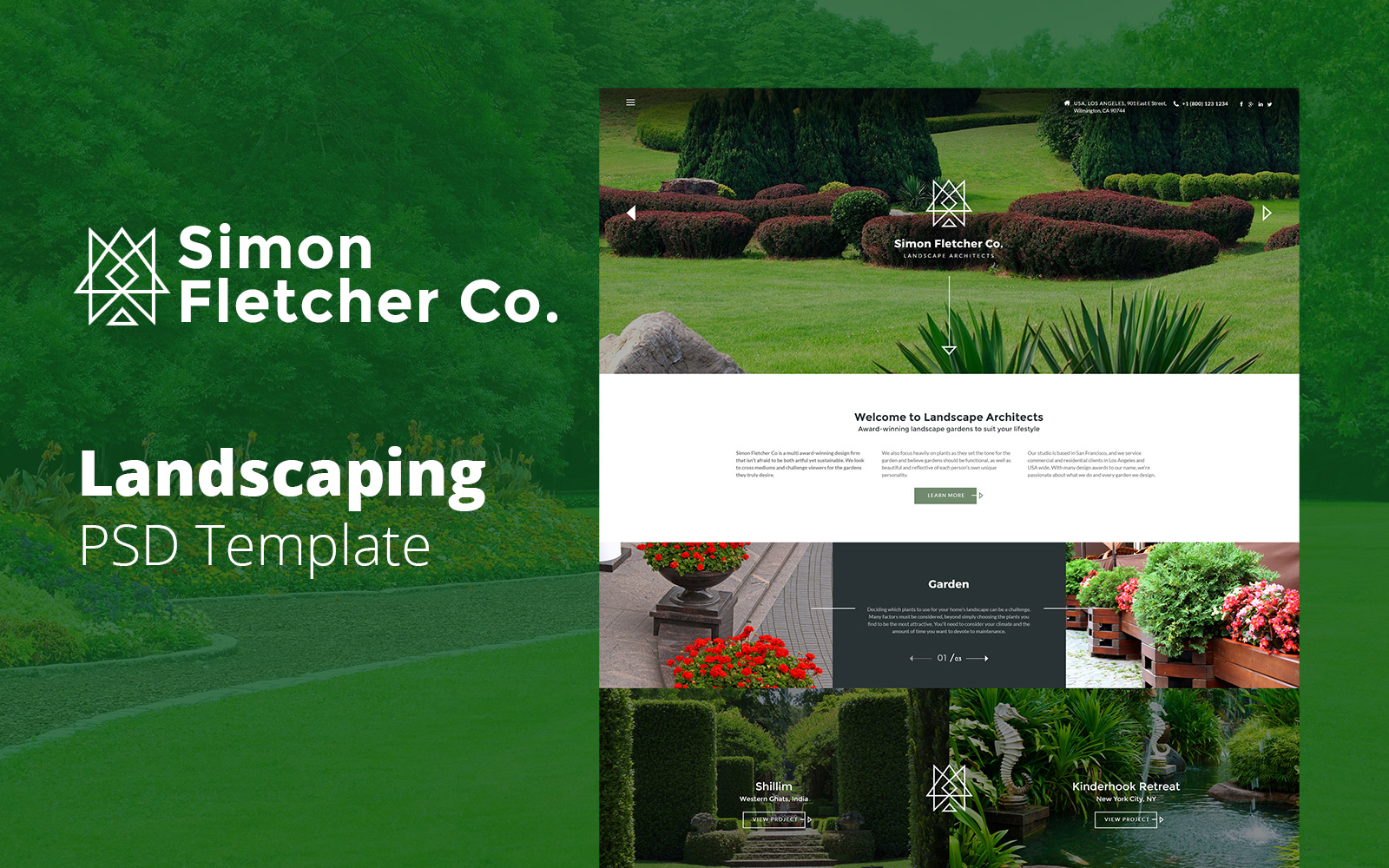 Download PSD шаблон "Simon Fletcher Co - Landscaping Website PSD Template" / Simon Fletcher Co - Landscaping Website PSD Template - PSD шаблон на тему дизайн экстерьера bamboo,clients,clipper,commercial,company,curbing,design,education,fern,garden,grass,herb,landscape,lawn,palm,planting,profile,residential,services,shrub