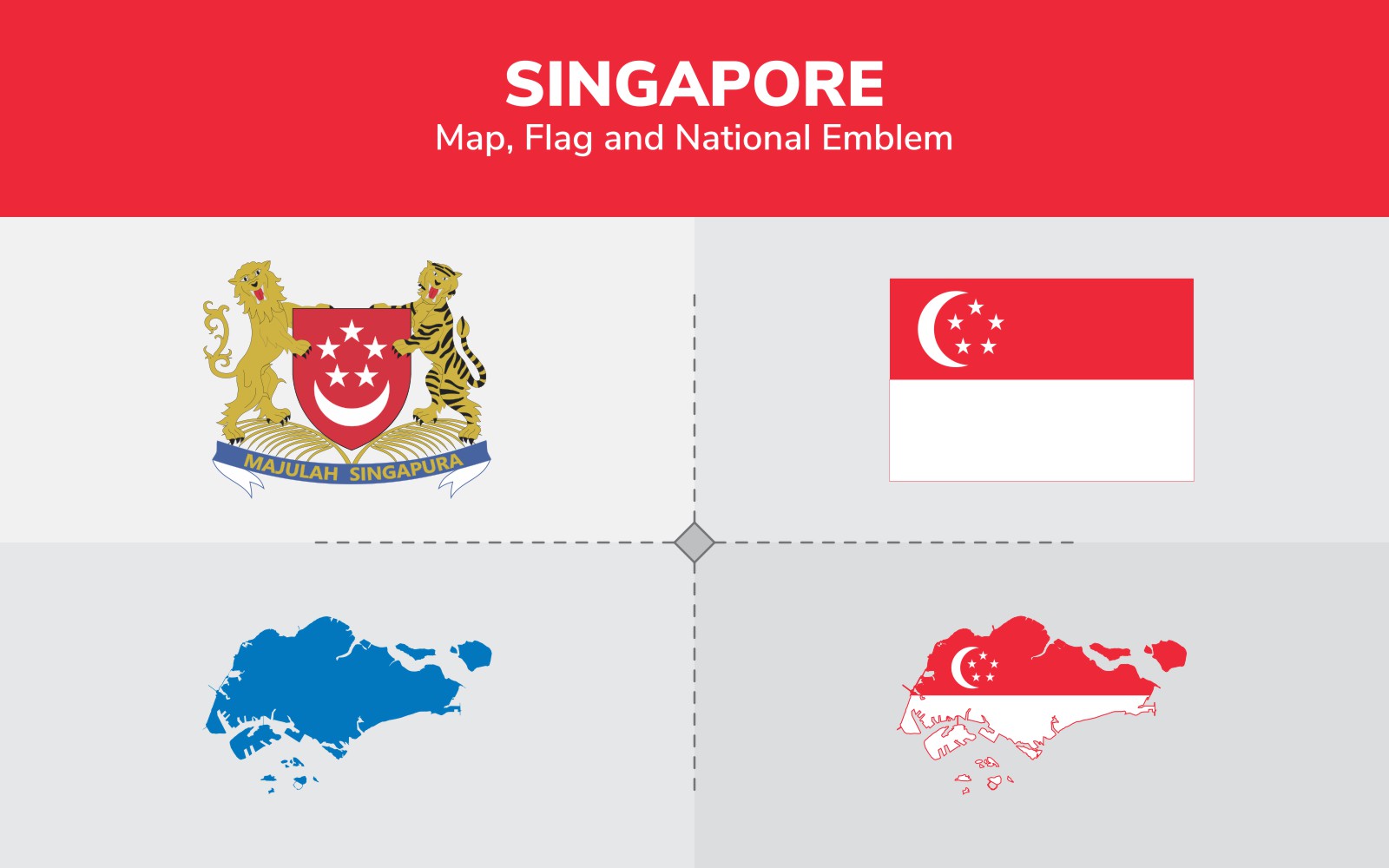 Download Иллюстрация "Singapore Map, Flag and National Emblem - Illustration" / Singapore Map, Flag and National Emblem - Illustration - Иллюстрация на тему графика continents,countries,map,political map,traveling,vector,emblem,national,flag,coat,arms,country,symbol,nations,state,sign,nation,badge,symbolic object,europe