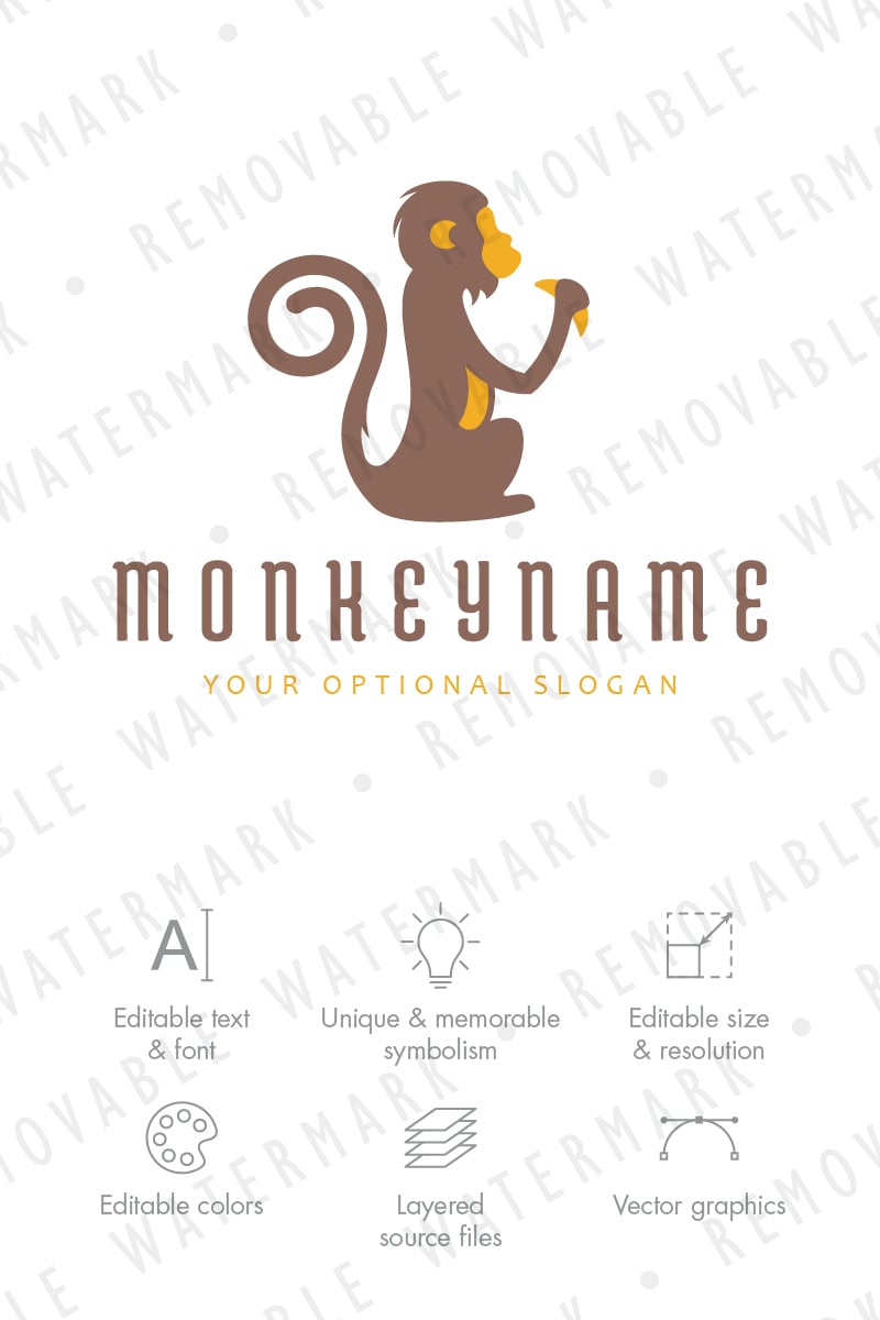 Download Шаблон логотипа "Sitting Monkey Logo Template" / Sitting Monkey Logo Template - Шаблон логотипа на тему графика animal monkey ape banana jungle relaxation eat hungry smart idea playfulness energy intelligence logo design template swiftness entertainment zoo veterinary