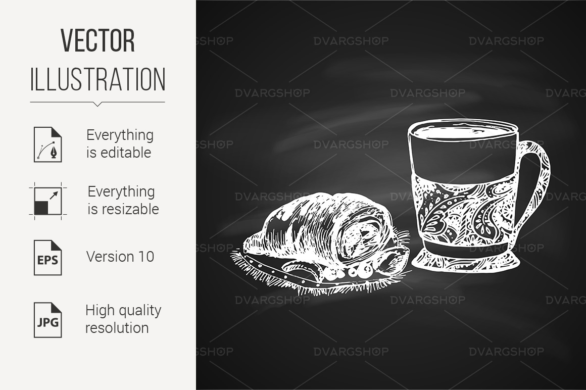 Download Vector "Sketch of Food - Vector Image" / Sketch of Food - Vector Image - Vector на тему графика sketch,vintage,chalkboard,food,cup,chalk,croissant,tea,graphic,coffee,artwork,background,porcelain,element,cappuccino,sweet,vector,morning,template,freeh