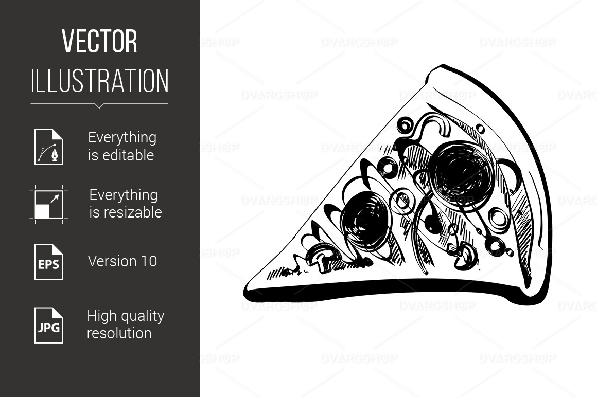 Download Vector "Sketch of Food - Vector Image" / Sketch of Food - Vector Image - Vector на тему графика pizza,sketch,drawn,food,abstract,slice,pepperoni,piece,illustration,eat,bacon,lunch,portion,print,graphic,vector,fat,restaurant,tomato,salami