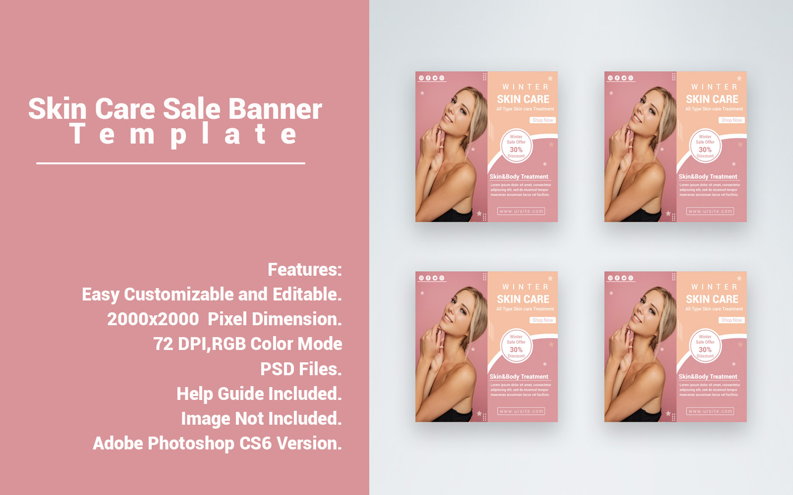 Download Шаблон для соцсетей "Skin Care Banner Social Media Template" / Skin Care Banner Social Media Template - Шаблон для соцсетей на тему графика banners,beauty,beauty products,discount,flat,flat design,gif,gif banner,google,google adwords banners,holiday,holidays,metro design,promotion,promotions,sale,sales,seasons,skin,skin care prod