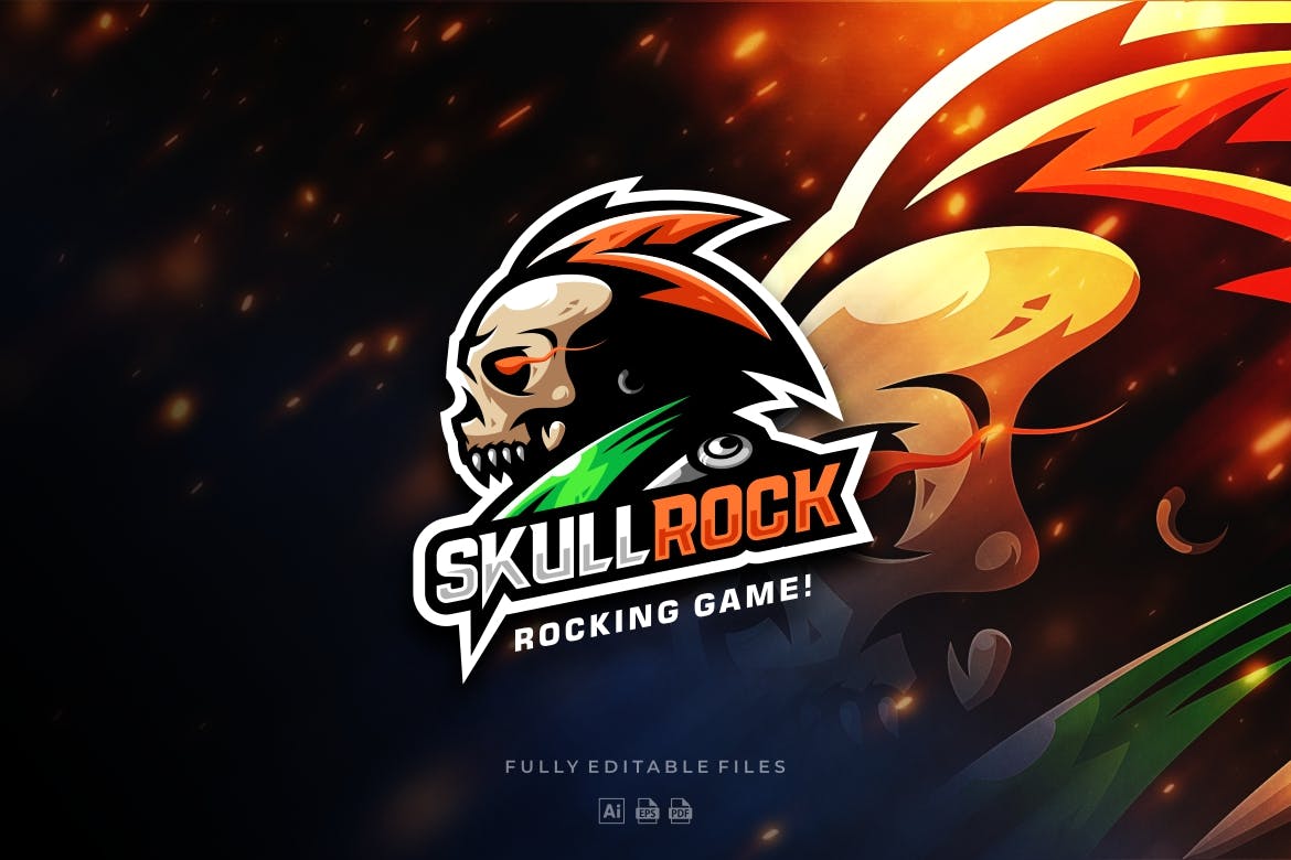 Download Шаблон логотипа "Skull Rock Gaming Logo Template" / Skull Rock Gaming Logo Template - Шаблон логотипа на тему графика skull,logo,game,game logo,fire