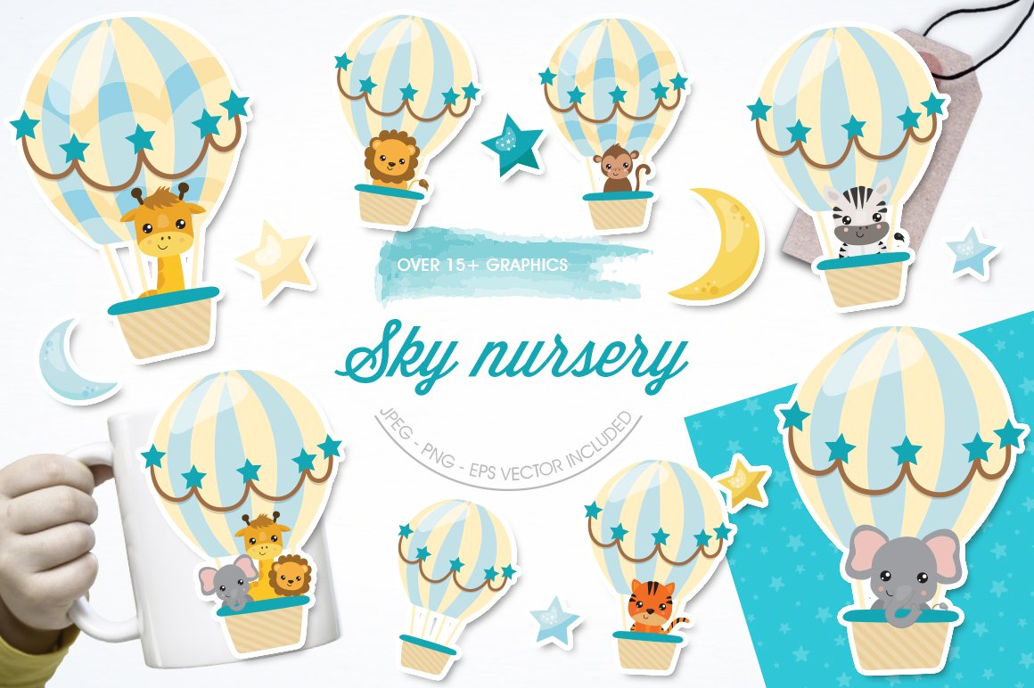 Download Vector "Sky Nursery - Vector Image" / Sky Nursery - Vector Image - Vector на тему графика scrapbook,scrapbooking,clipart,moon,stars,clip art,animals,nursery,giraffe,elephant,lion,air balloon,prettygrafik,vector art,kawaii balloon