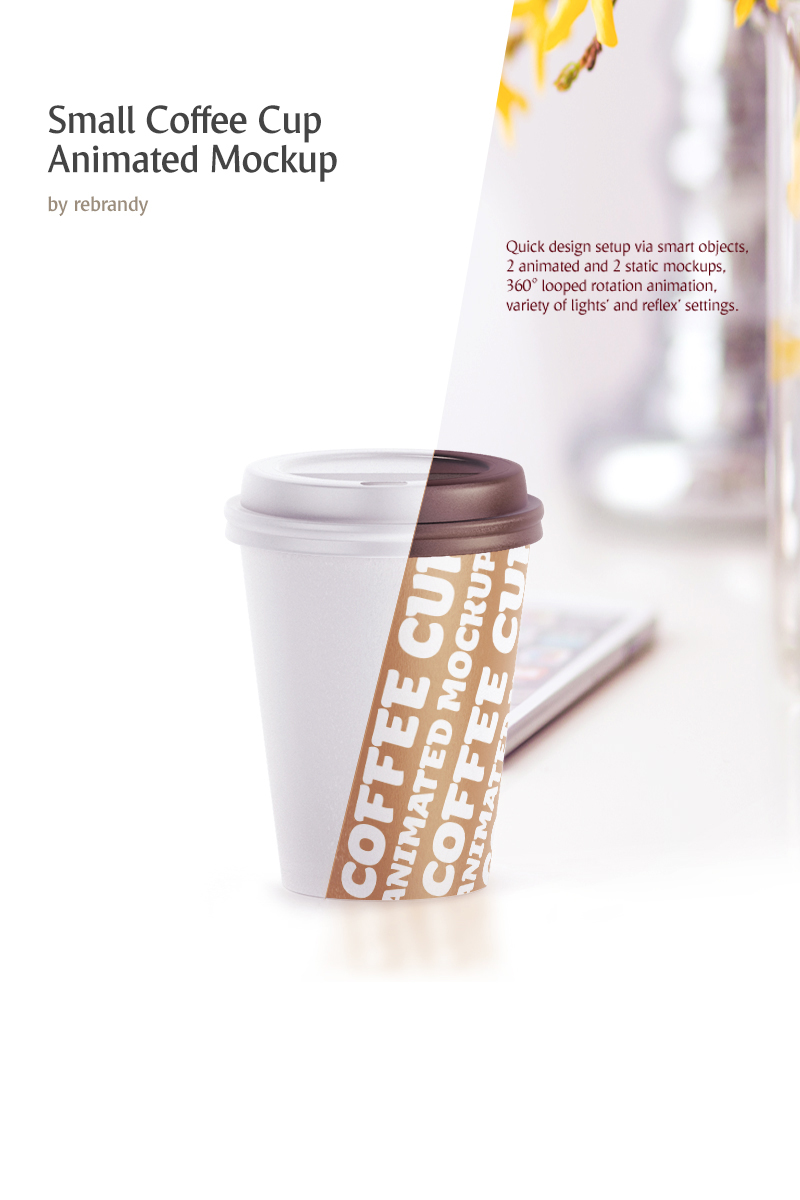 Download Мокап для продукта "Small Coffee Cup Animated product mockup" / Small Coffee Cup Animated product mockup - Мокап для продукта на тему графика psd mockup template coffee cup coffe disposable takeaway cardboard beverage drink container package plastic paper takeout tea barista shop mokcup
