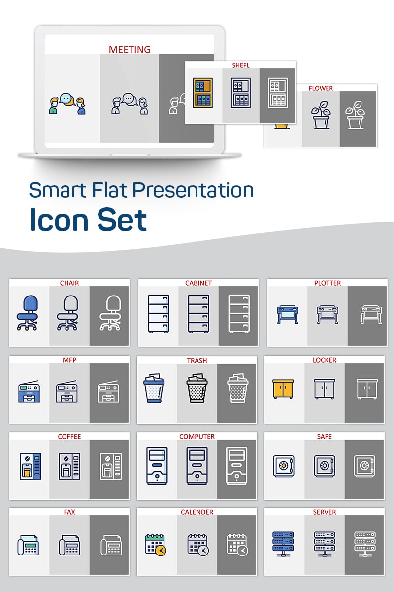 Download Набор иконок "Smart Flat Presentation PowerPoint Icon Set" / Smart Flat Presentation PowerPoint Icon Set - Набор иконок на тему графика flower meeting strategy market research phone table workplace icons office powerpoint ppt iocns flat amazing free