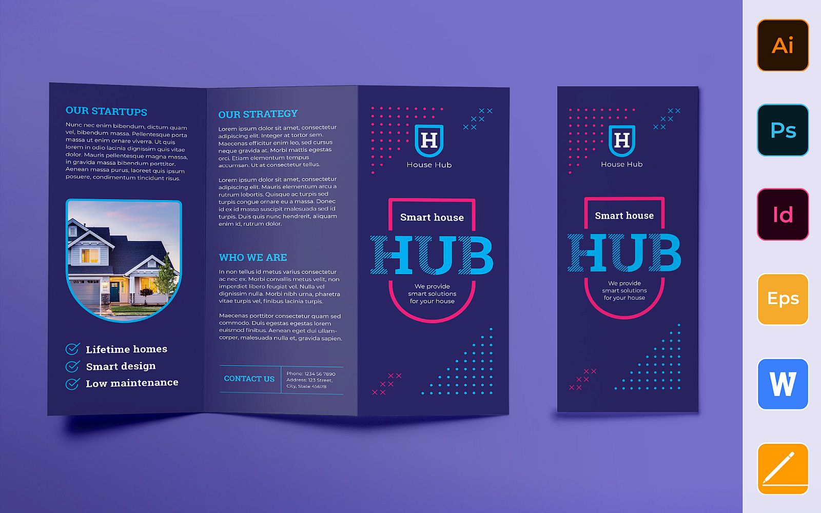 Download Фирменный стиль "Smart House Brochure Trifold - Corporate Identity Template" / Smart House Brochure Trifold - Corporate Identity Template - Фирменный стиль на тему графика brochure,trifold,template,corporate,company,branding,smart,house,home,technology,building,planning,security,blue,pink