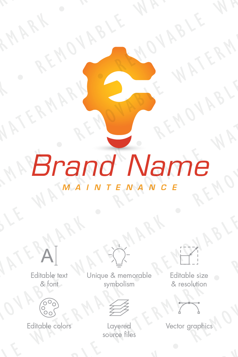 Download Шаблон логотипа "Smart Maintenance Logo Template" / Smart Maintenance Logo Template - Шаблон логотипа на тему графика construction,bulb,wrench,gear,cogwheel,energy,repair,fix,smart,idea,innovation,maintenance,engineering,logo,design,template,handyman,technology,stylized,tool