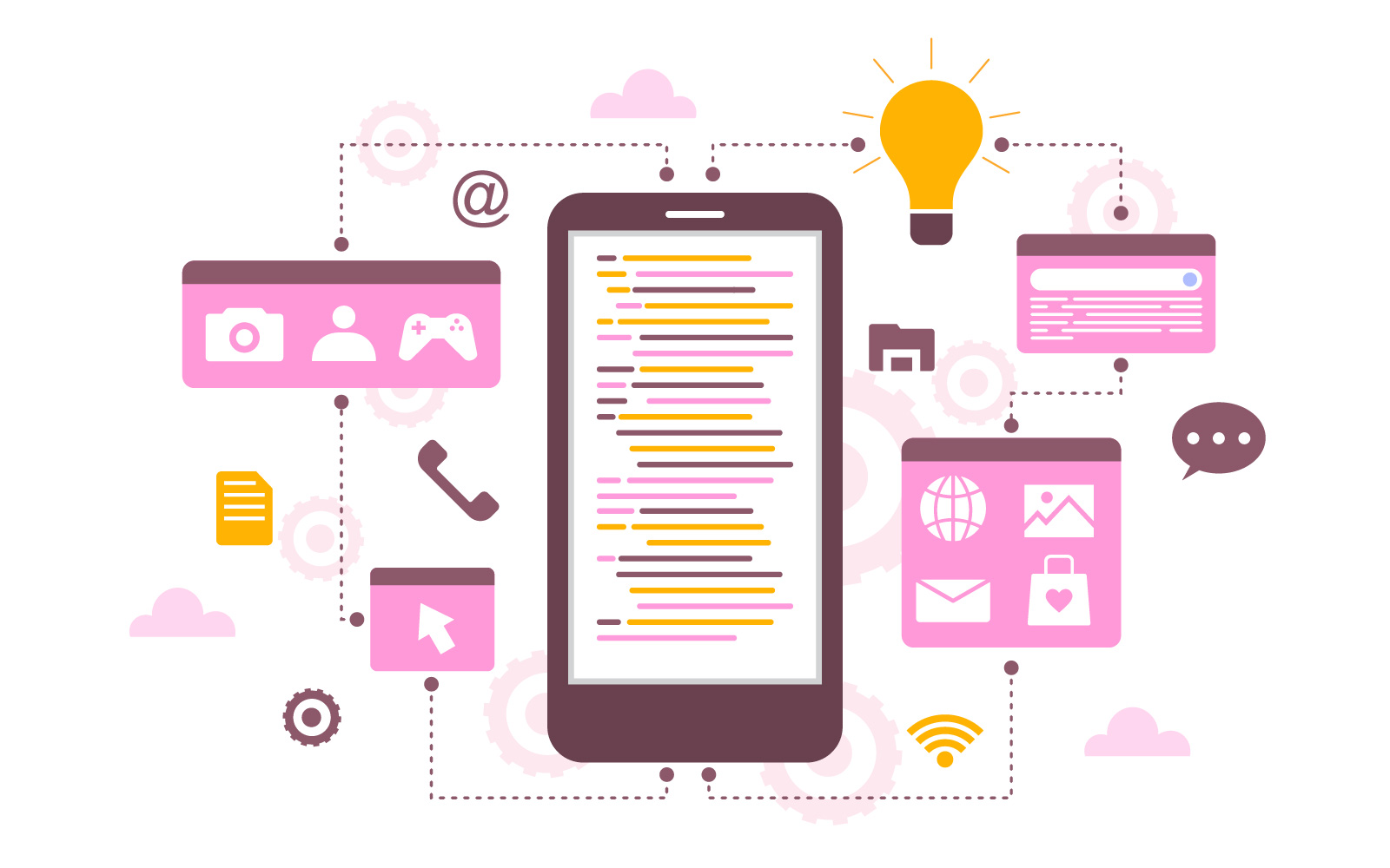 Download Иллюстрация "Smartphone App Development - Illustration" / Smartphone App Development - Illustration - Иллюстрация на тему графика smartphone,mobile,app,development,process,flat,design,illustration,vector,concept,isolated,developer,phone,application,software,web,icon,business,computer,marketing