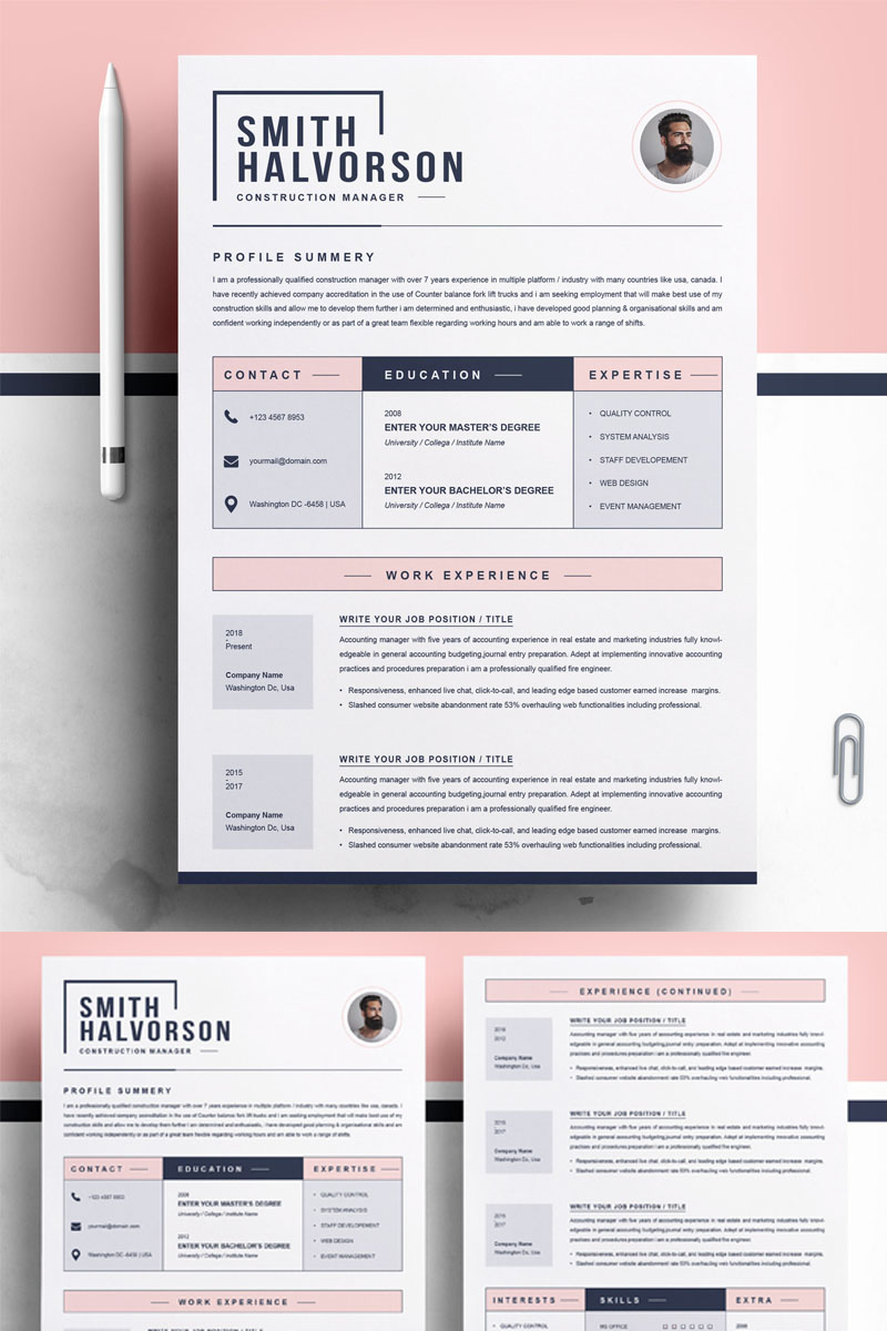 Download Резюме "Smith Halvorson Resume Template" / Smith Halvorson Resume Template - Резюме на тему графика cover letter resume instant download for mac cv design template infographic minimal swiss clean creative photo photoshop psd word job
