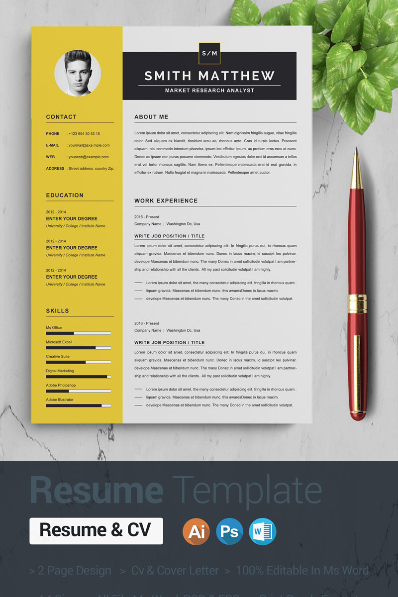 Download Резюме "Smith Resume Template" / Smith Resume Template - Резюме на тему графика 2 page a4 clean cv design elegant resume female feminine infographic letter minimalist modern portfolio professional indesign minimal pages