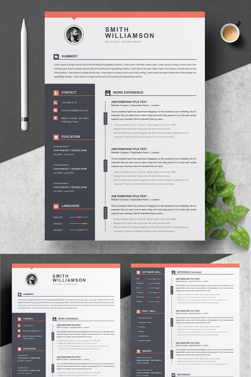 Download Резюме "Smith Williamson Resume Template" / Smith Williamson Resume Template - Резюме на тему графика 1 page resume 2 clean cv cover letter design template illustrator eps mac pages microsoft word modern photoshop psd professional