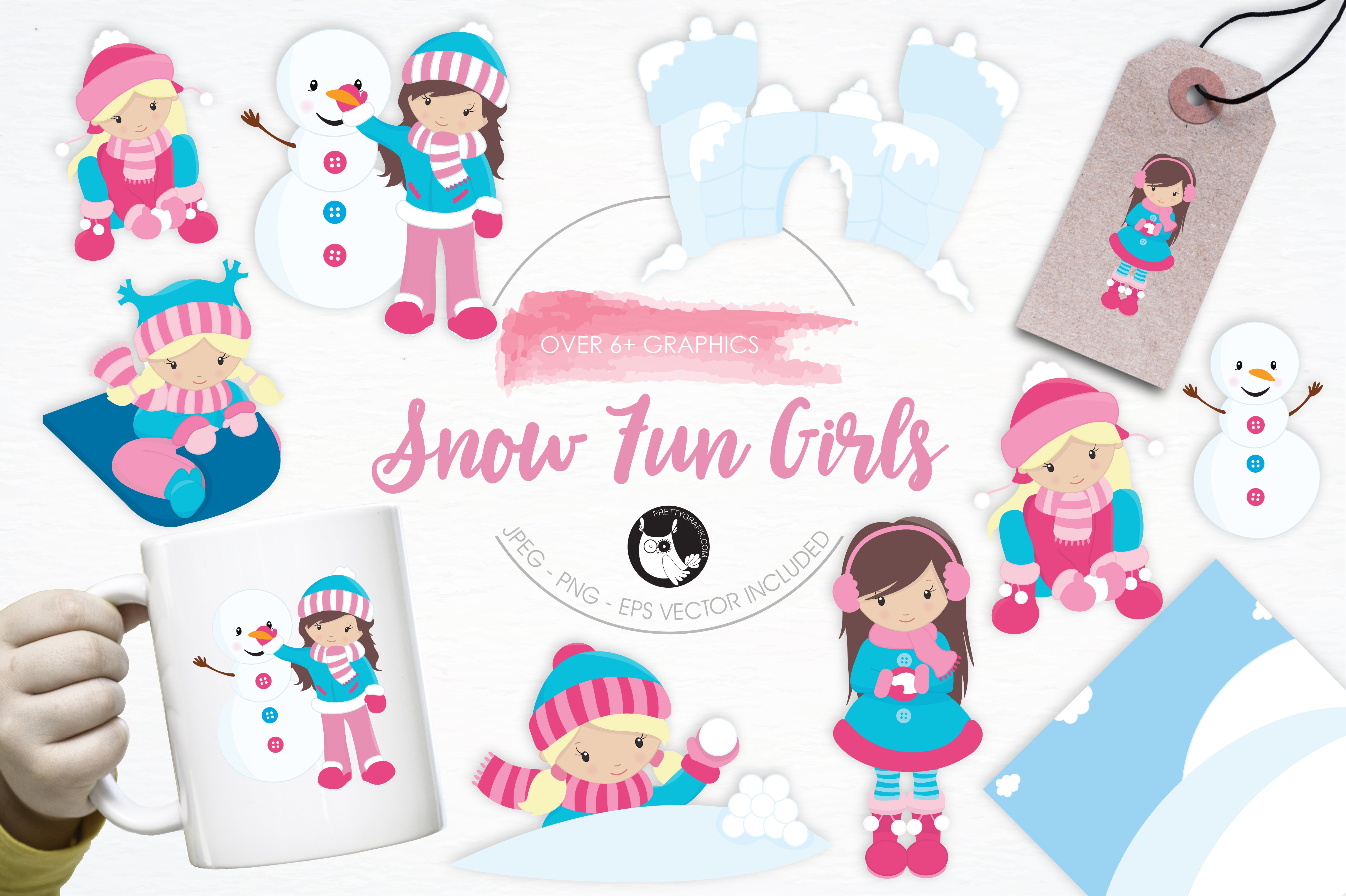 Download Vector "Snow Fun Girls illustration pack - Vector Image" / Snow Fun Girls illustration pack - Vector Image - Vector на тему графика christmas,illustration,winter,vector,graphics,clipart,clip art,snow,icon,snowflakes,snowman,eps,prettygrafik,girls,snow fun girls