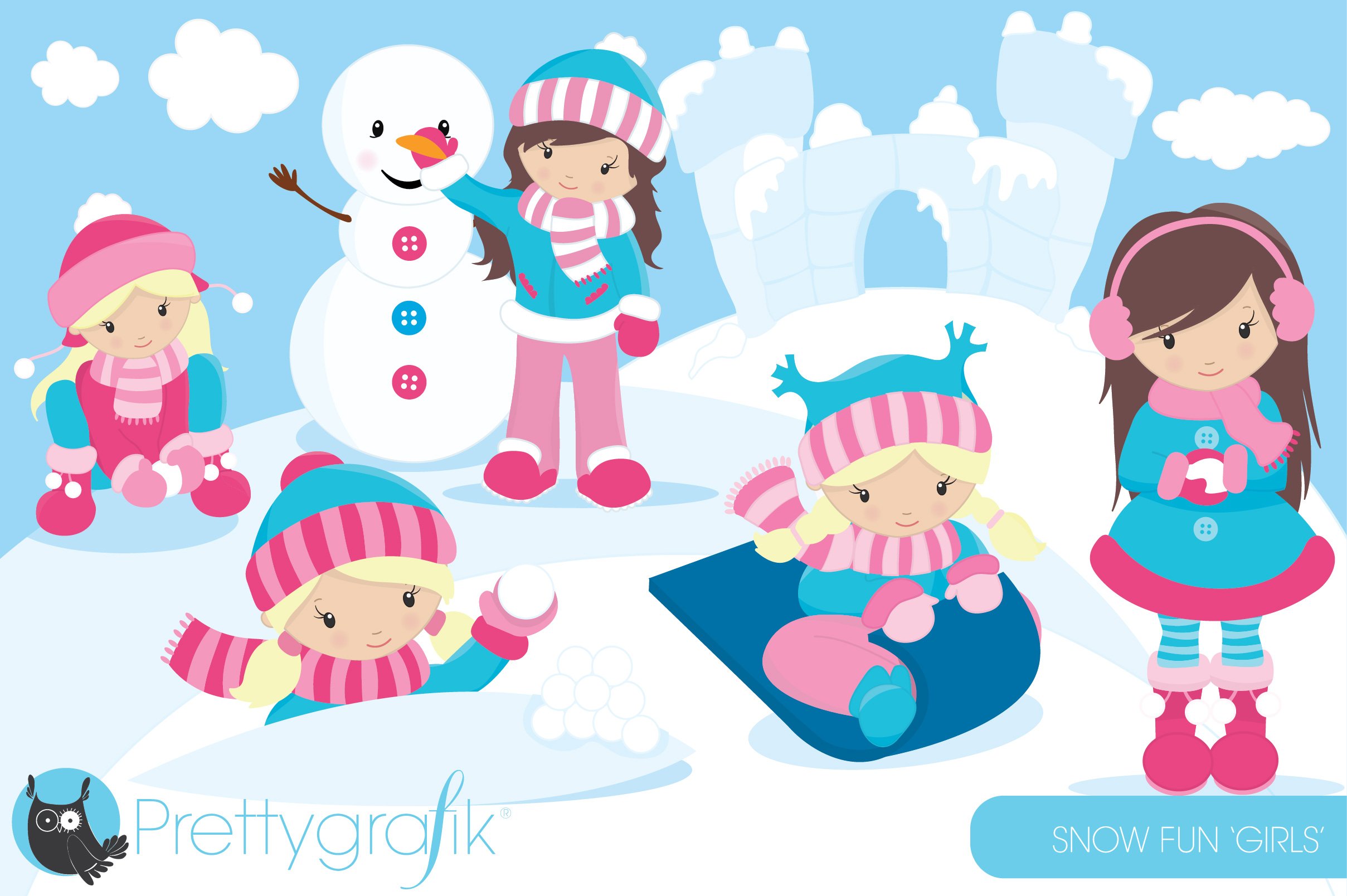 Download Vector "Snow Girls Clipart Commercial Use - Vector Image" / Snow Girls Clipart Commercial Use - Vector Image - Vector на тему графика illustration,scrapbooking,winter,vector,clipart,clip art,girl,snowman,image,digital art,vector graphics