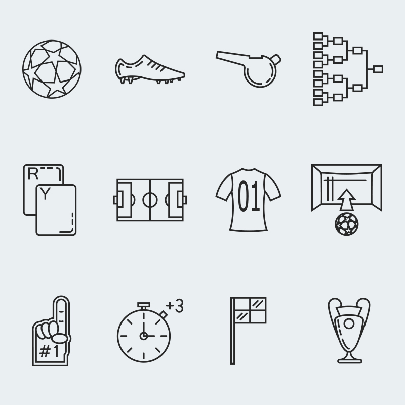 Download Набор иконок "Soccer vector Icon Set" / Soccer vector Icon Set - Набор иконок на тему графика vector, icon, simple, outline, flat, illustration, computer, interface, graphic, design, art, web, symbol, soccer, sport, football, match, chempioship, winner, win, fun, club