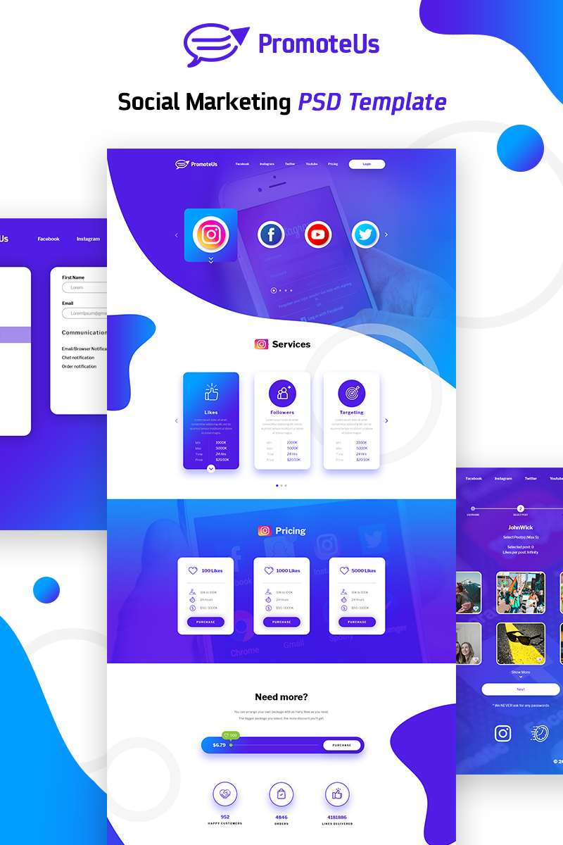 Download PSD шаблон "Social Marketing PSD Template" / Social Marketing PSD Template - PSD шаблон на тему веб-дизайн social marketing psd dashboard ecommerce