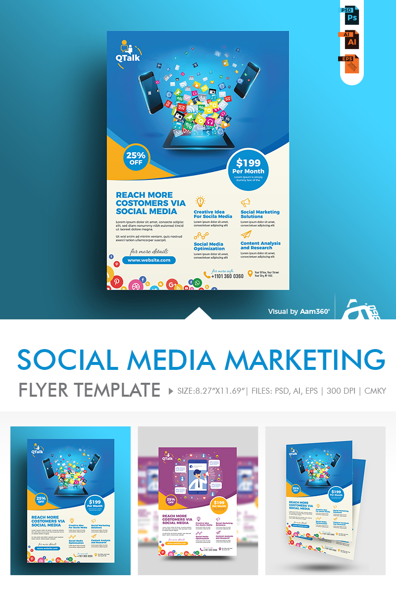 Download Фирменный стиль "Social Media Marketing Flyer - Corporate Identity Template" / Social Media Marketing Flyer - Corporate Identity Template - Фирменный стиль на тему графика aam360 digital marketing facebook content flyer social media seminar campaign social-media web template agency workshop e-commerce flyer-template shop growth earn