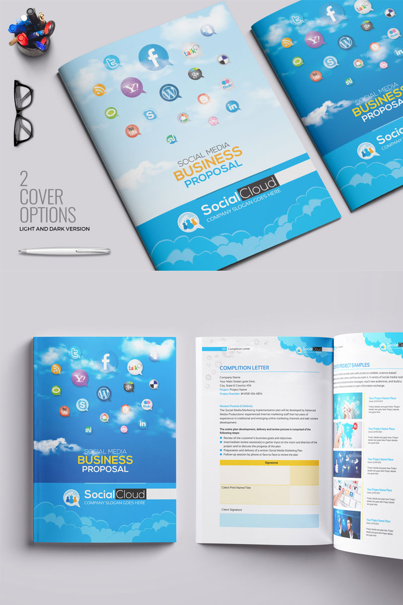 Download Фирменный стиль "Social Media Project Proposal - Corporate Identity Template" / Social Media Project Proposal - Corporate Identity Template - Фирменный стиль на тему графика social media marketing proposal template project design quote quotation indesign business clean word corporate stationery company simple brief agreement profile