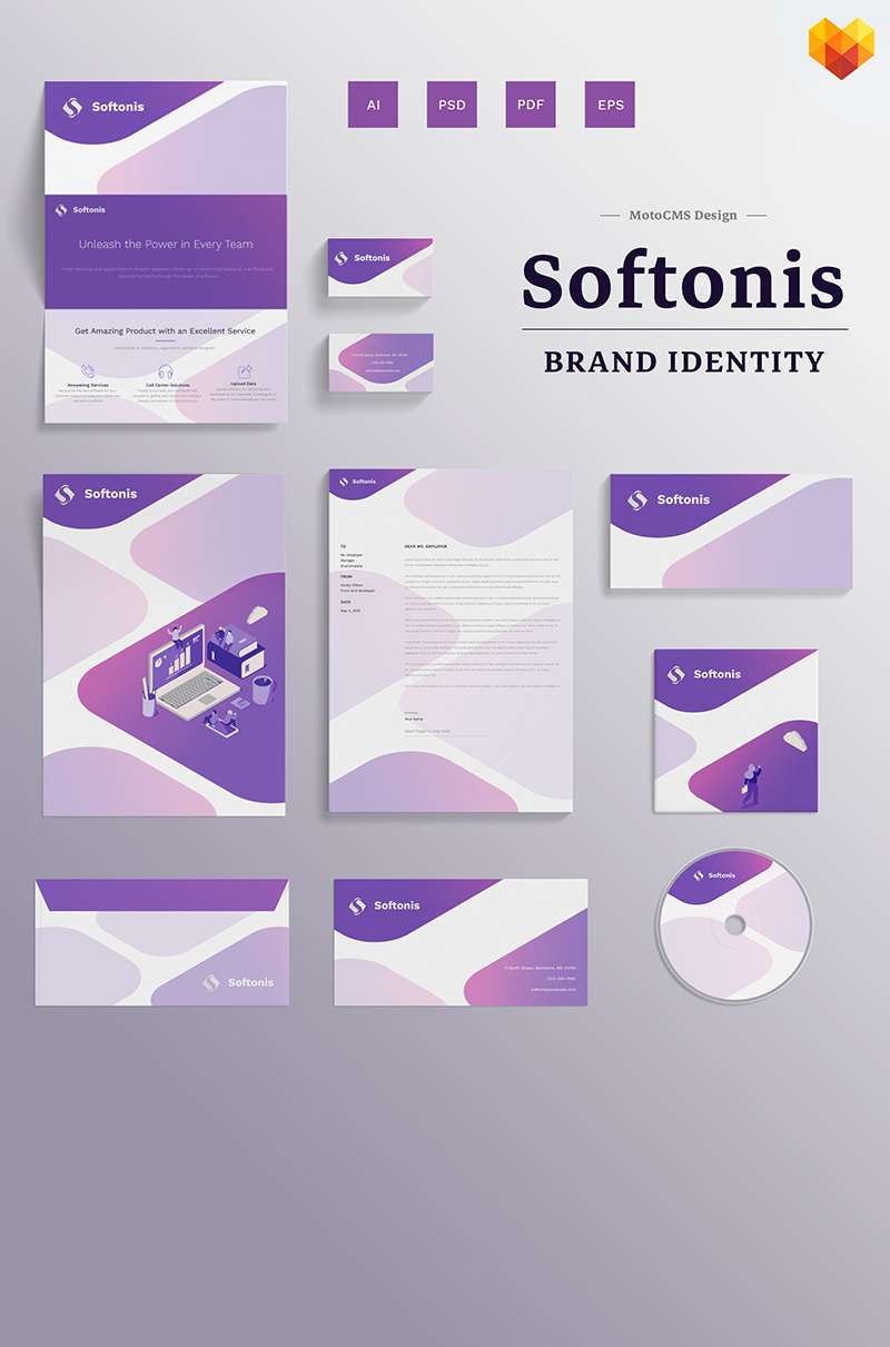 Download Фирменный стиль "Softonis Company Branding Design - Corporate Identity Template" / Softonis Company Branding Design - Corporate Identity Template - Фирменный стиль на тему графика identity business card design mockup stationery personal printed business card recognition print brand corporate branding