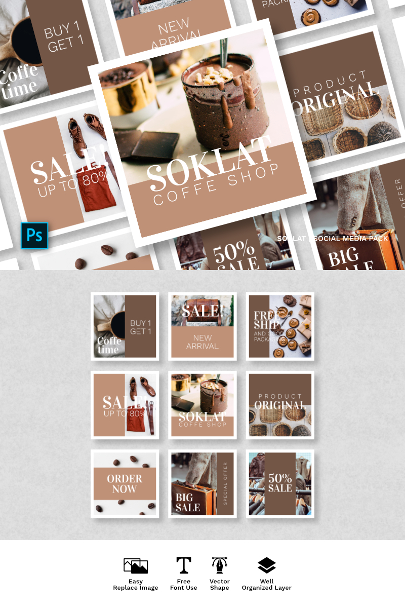 Download Шаблон для соцсетей "Soklat Pack Social Media Template" / Soklat Pack Social Media Template - Шаблон для соцсетей на тему графика instagram facebook twitter banner template sale media social background design vector fashion promotion stories instagramtemplates post story