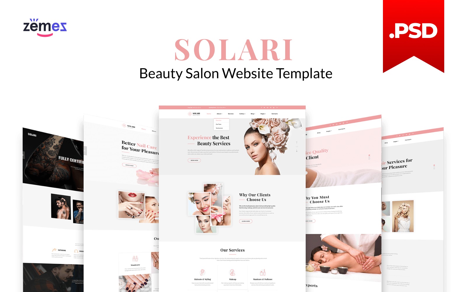 Download PSD шаблон "Solari - Beauty Salon HTML5 PSD Template" / Solari - Beauty Salon HTML5 PSD Template - Адаптивный PSD шаблон на тему салон красоты beauty services,massage salon,wellness and beauty,beauty parlor,hair salon,beauty cosmetics,cosmetics makeup products,beauty products,skincare,hair extension,hair extensions clips,hair extens