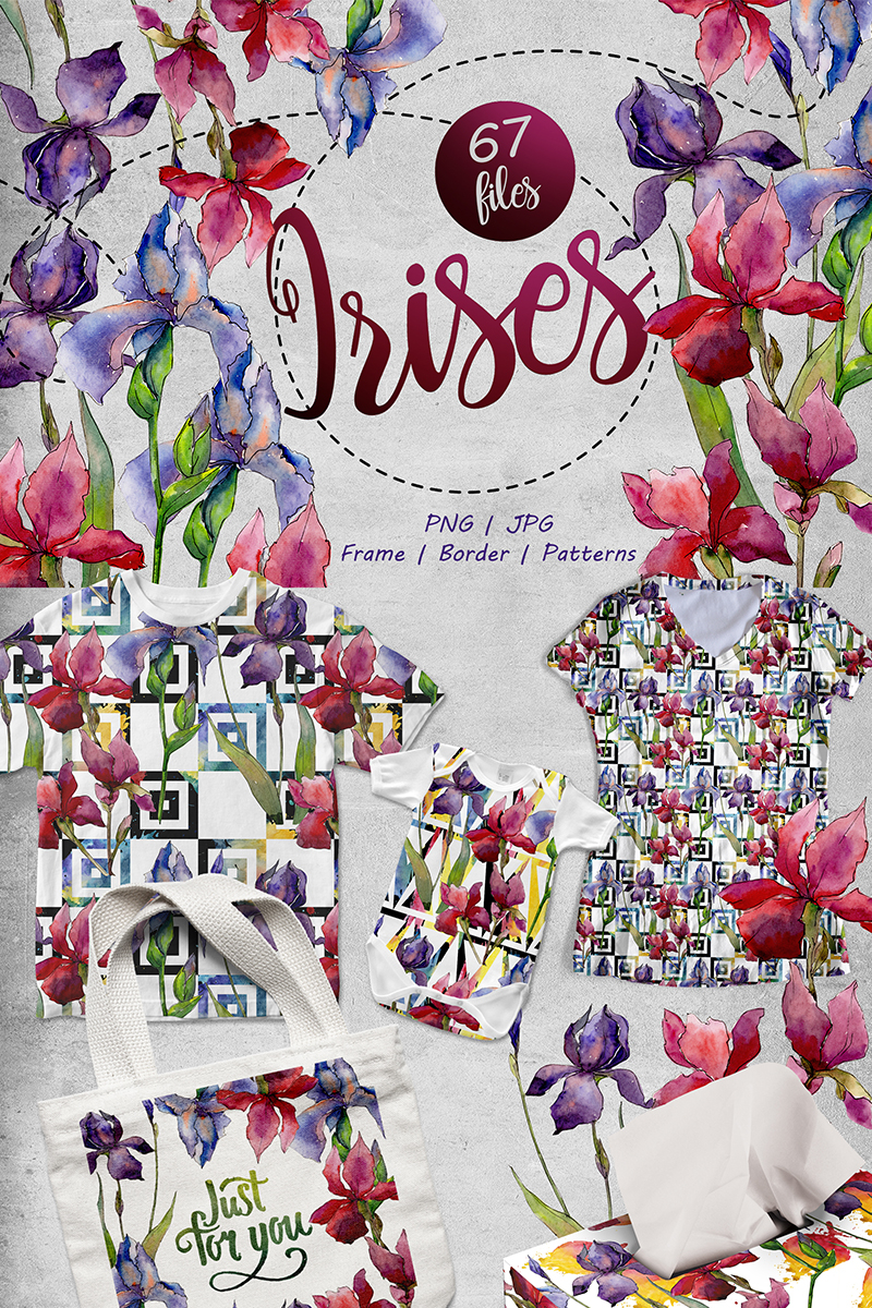 Download Иллюстрация "Сolorful Irises PNG Watercolor Set - Illustration" / Сolorful Irises PNG Watercolor Set - Illustration - Иллюстрация на тему графика watercolor illustration iris drawing background textile colorful fashion drawn vintage paint leaf plant seasonal deciduous foliage flower sprout stem botanical