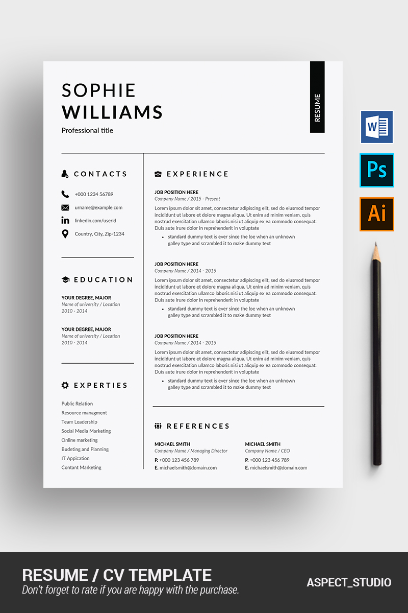 Download Резюме "Sophie Williams Resume Template" / Sophie Williams Resume Template - Резюме на тему графика 1,page,resume,2,a4,blue,clean,cover,letter,creative,cv,template,design,document,infographic,microsoft,word,minimalist,modern,photoshop