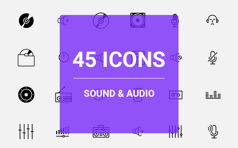 Download Набор иконок "Sound & Audio Icon Set" / Sound & Audio Icon Set - Набор иконок на тему графика sound audio ui music note volume stereo mono speaker speakers headphones wave piano micro microphone cd dvd album speak speech