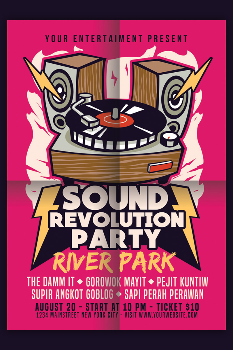 Download Фирменный стиль "Sound Revolution Party - Corporate Identity Template" / Sound Revolution Party - Corporate Identity Template - Фирменный стиль на тему графика alternative design dj flyer event london mix new entry oasis old store style photo vinyl pink play records remix retro