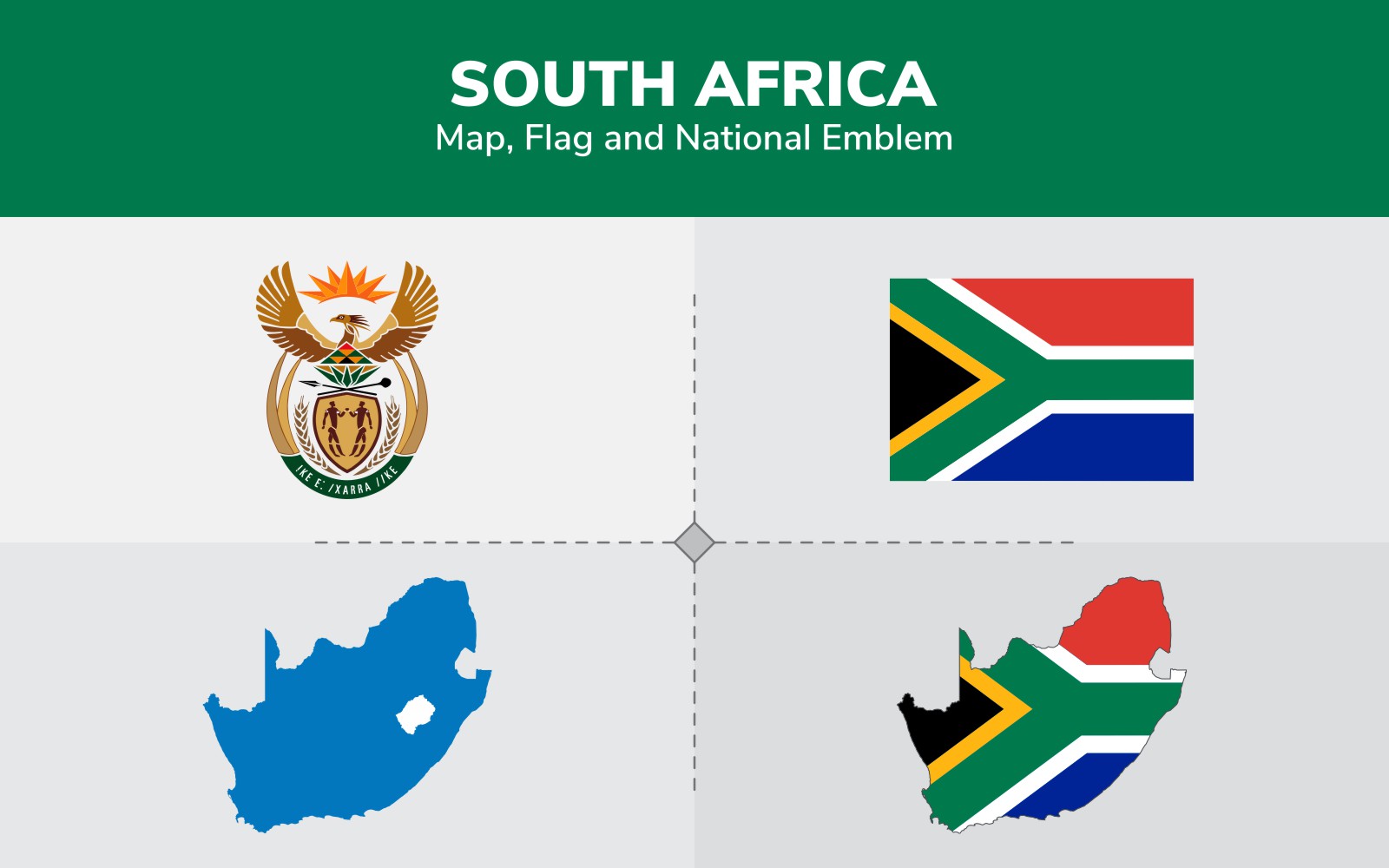 Download Иллюстрация "South Africa Map, Flag and National Emblem - Illustration" / South Africa Map, Flag and National Emblem - Illustration - Иллюстрация на тему графика continents,countries,map,political map,traveling,vector,emblem,national,flag,coat,arms,country,symbol,nations,state,sign,nation,badge,symbolic object,europe
