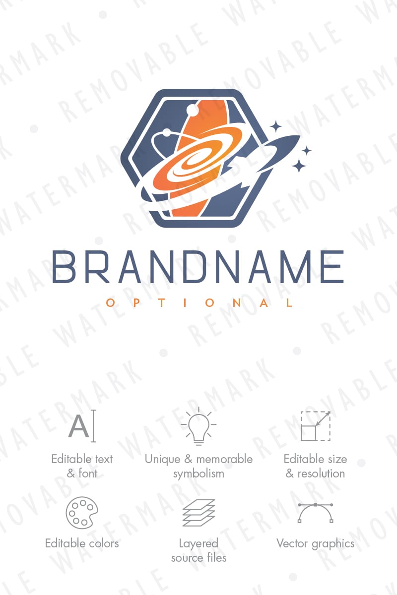 Download Шаблон логотипа "Space Exploration Logo Template" / Space Exploration Logo Template - Шаблон логотипа на тему графика atom science adventure travel flying space rocket future orbit gravity universe vessel vortex astronomy galaxy spaceship exploration logo design template
