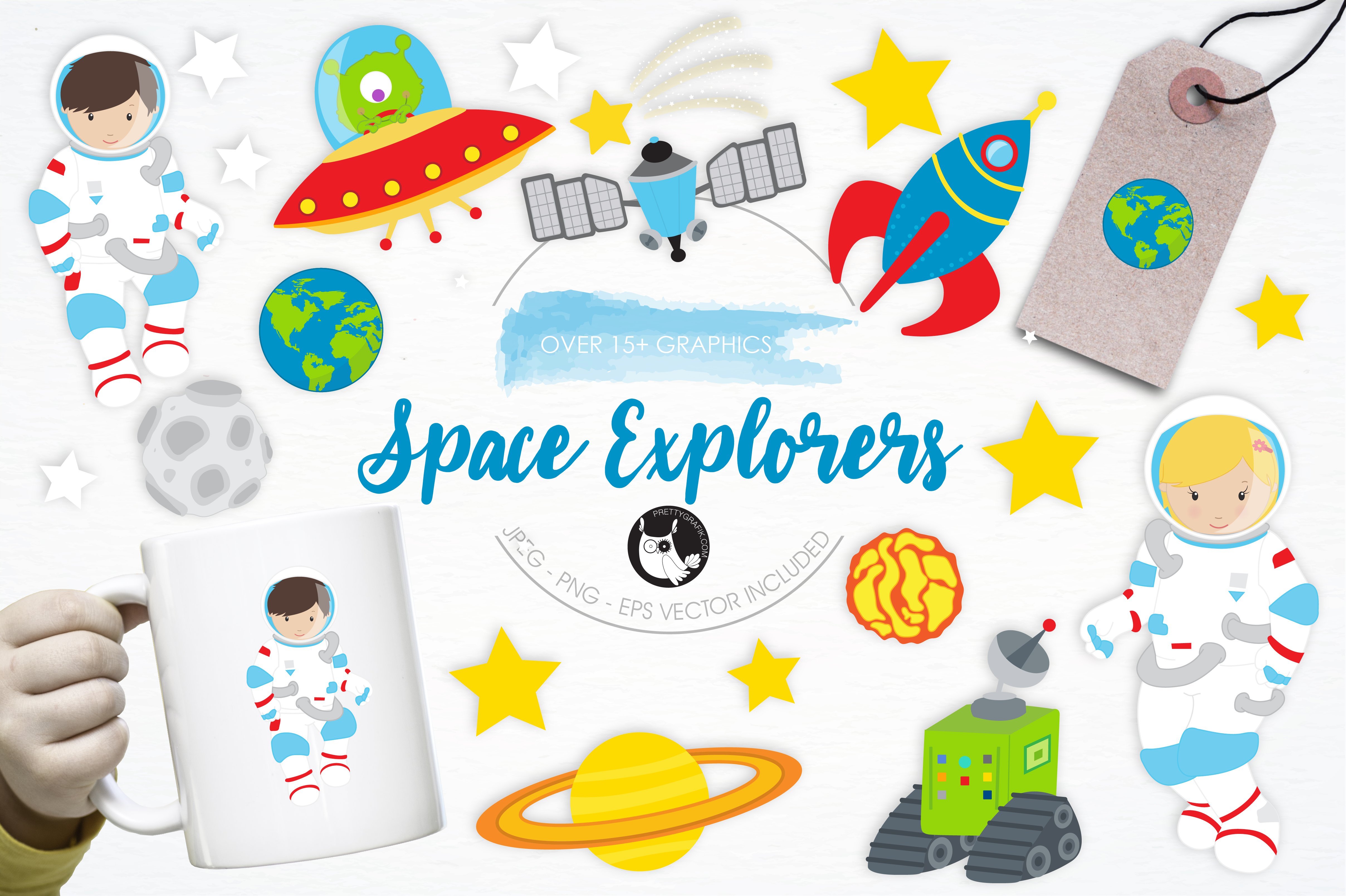 Download Vector "Space Explorers illustration pack - Vector Image" / Space Explorers illustration pack - Vector Image - Vector на тему графика illustration,vector,graphics,clipart,moon,clip art,icon,space,eps,alien,prettygrafik,space explorers,explorers,astronauts,planets