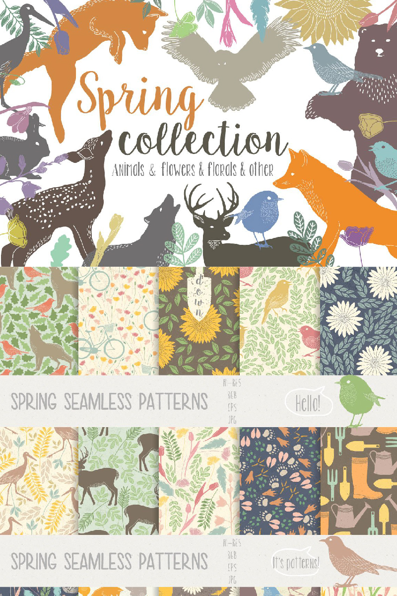 Download Иллюстрация "Spring Collection - Illustration" / Spring Collection - Illustration - Иллюстрация на тему графика element pattern texture postcard card fox animals spring invite branding social media botanical fashion abstract retro vintage stories wreath winter