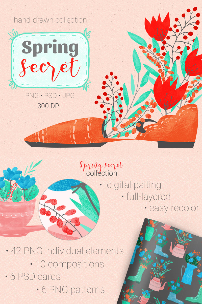Download Иллюстрация "Spring Secret Collection - Illustration" / Spring Secret Collection - Illustration - Иллюстрация на тему графика spring shoe card pattern template floral flower bloom blossom teapot gentle hand drawn