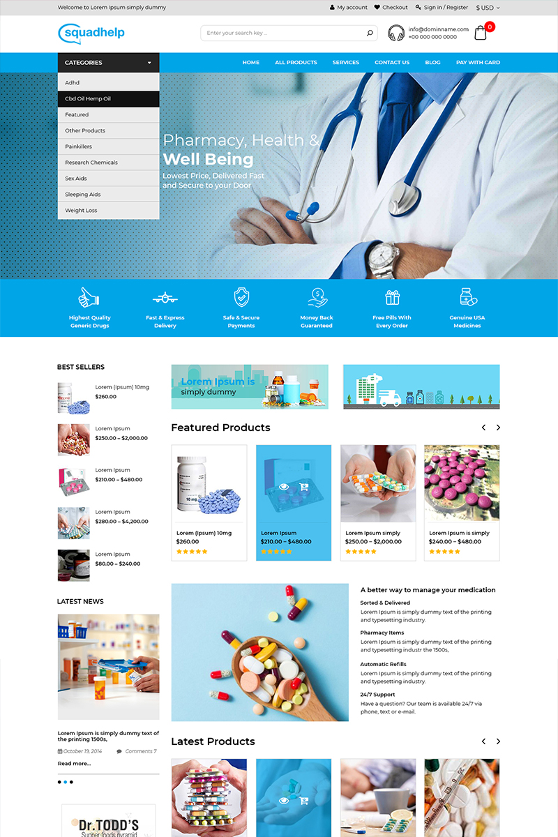 Download PSD шаблон "Squadhelp - Medicine Store PSD Template" / Squadhelp - Medicine Store PSD Template - PSD шаблон на тему аптека medicine store template theme psd photoshop